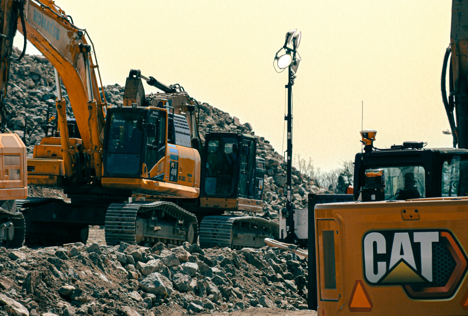 Excavators, bulldozers, dumpers, rollers, and loaders—fully manned.